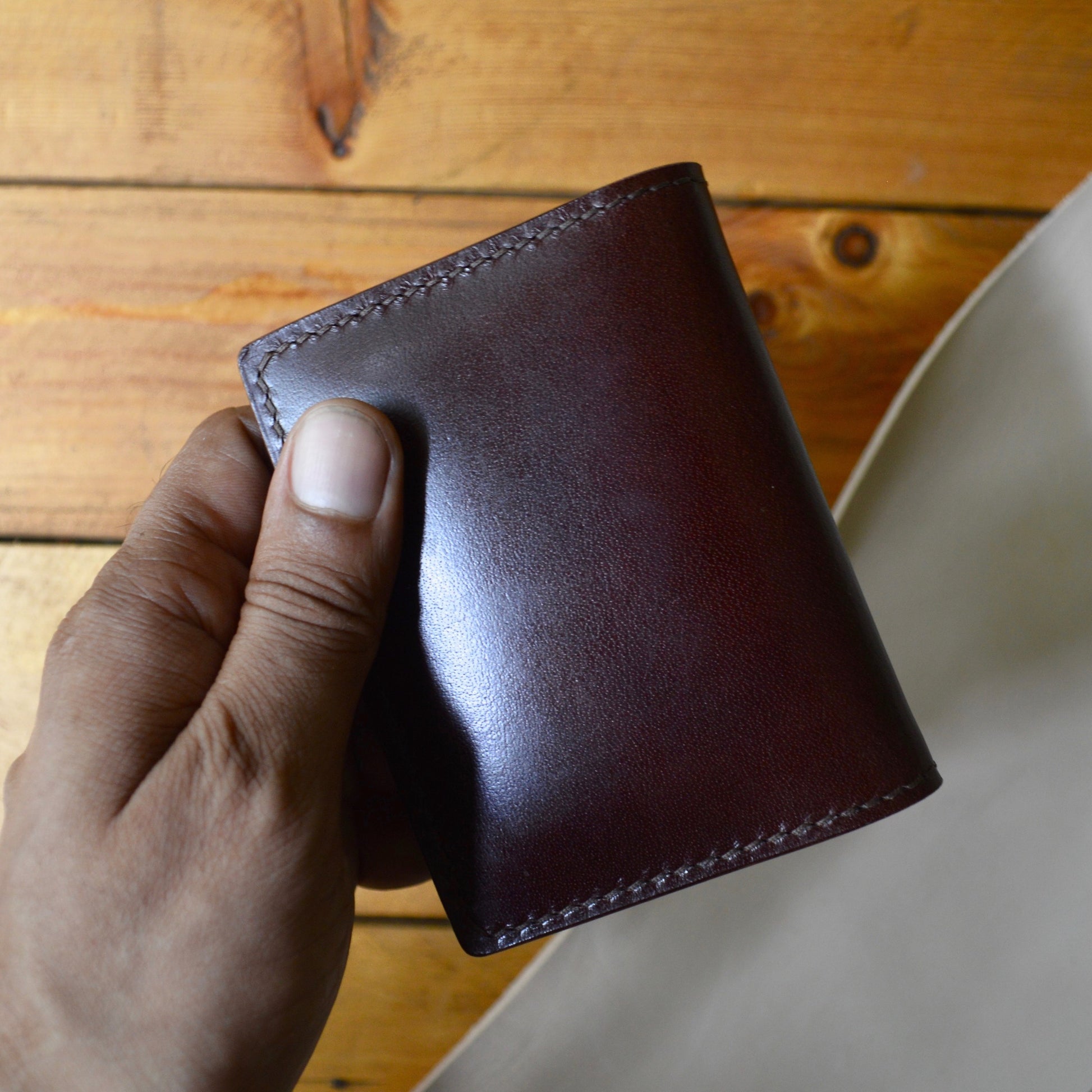 We hand stitch our wallets with a single thread and two needles - This technique is called saddle stitching. Hermés is one of the very few luxury brands that stitches their bags using the saddle stitching technique.