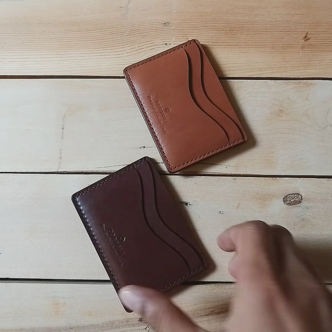 We hand stitch our wallets with a single thread and two needles - This technique is called saddle stitching. Hermés is one of the very few luxury brands that stitches their bags using the saddle stitching technique.