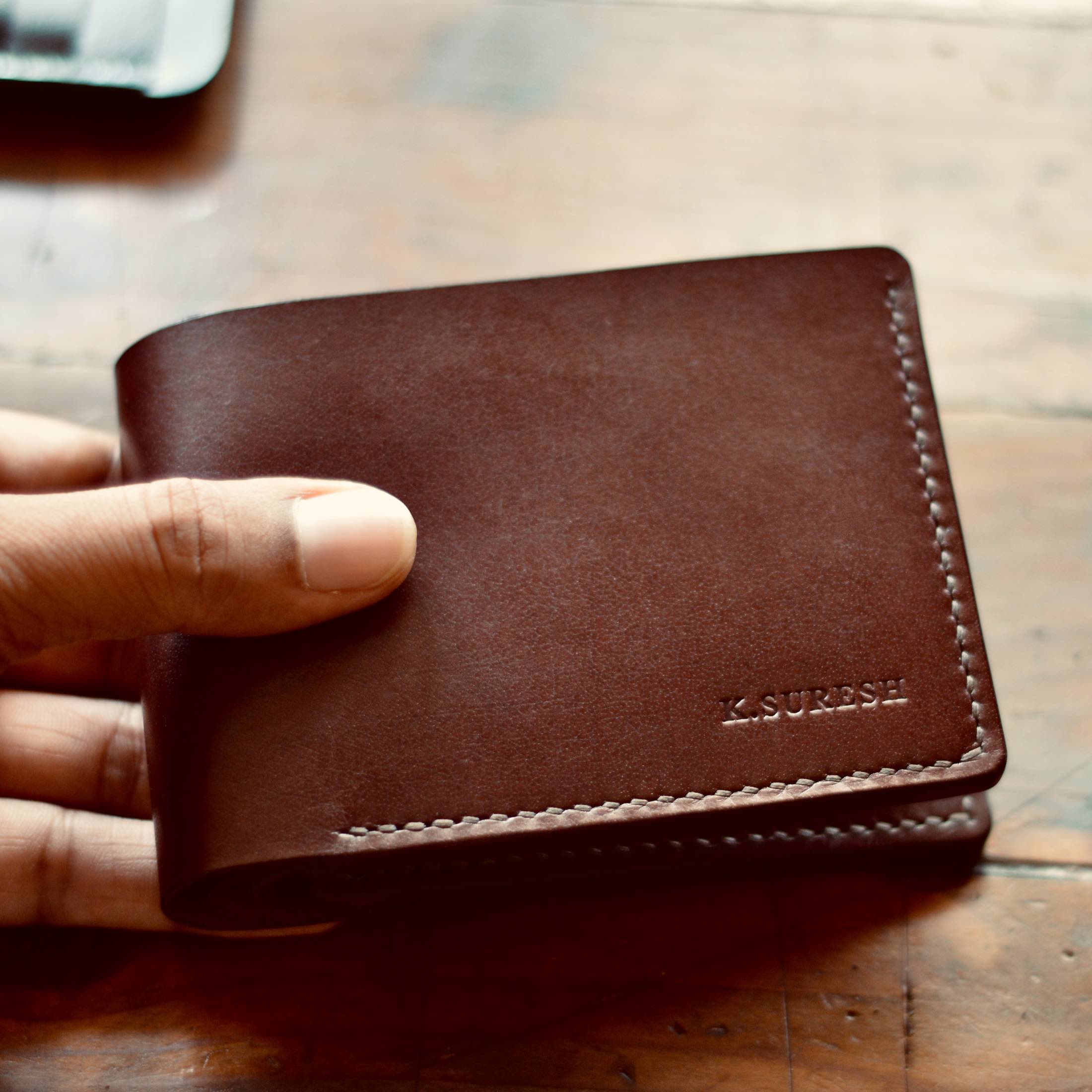 We hand stitch our wallets with a single thread and two needles - This technique is called saddle stitching. Hermés is one of the very few luxury brands that stitches their bags using the saddle stitching technique.