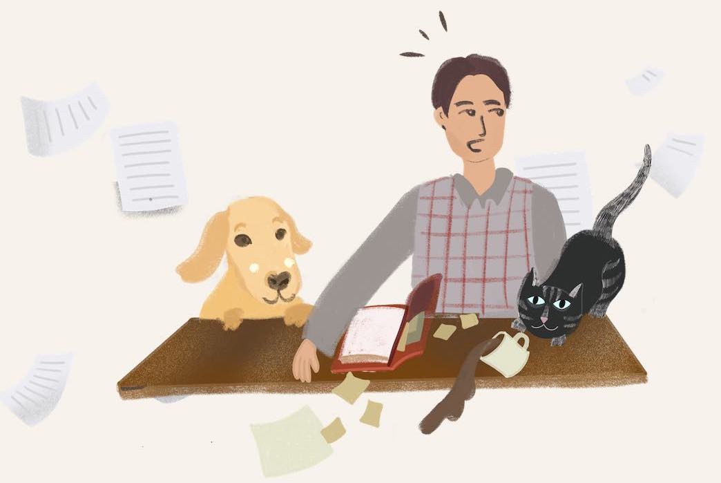 I toppled over my cup, the cat jumped off the table, the notebook was soaked and the dog started lapping up the tea from the floor.