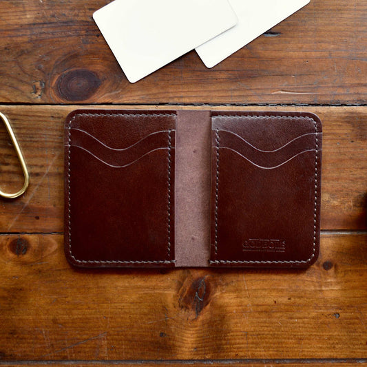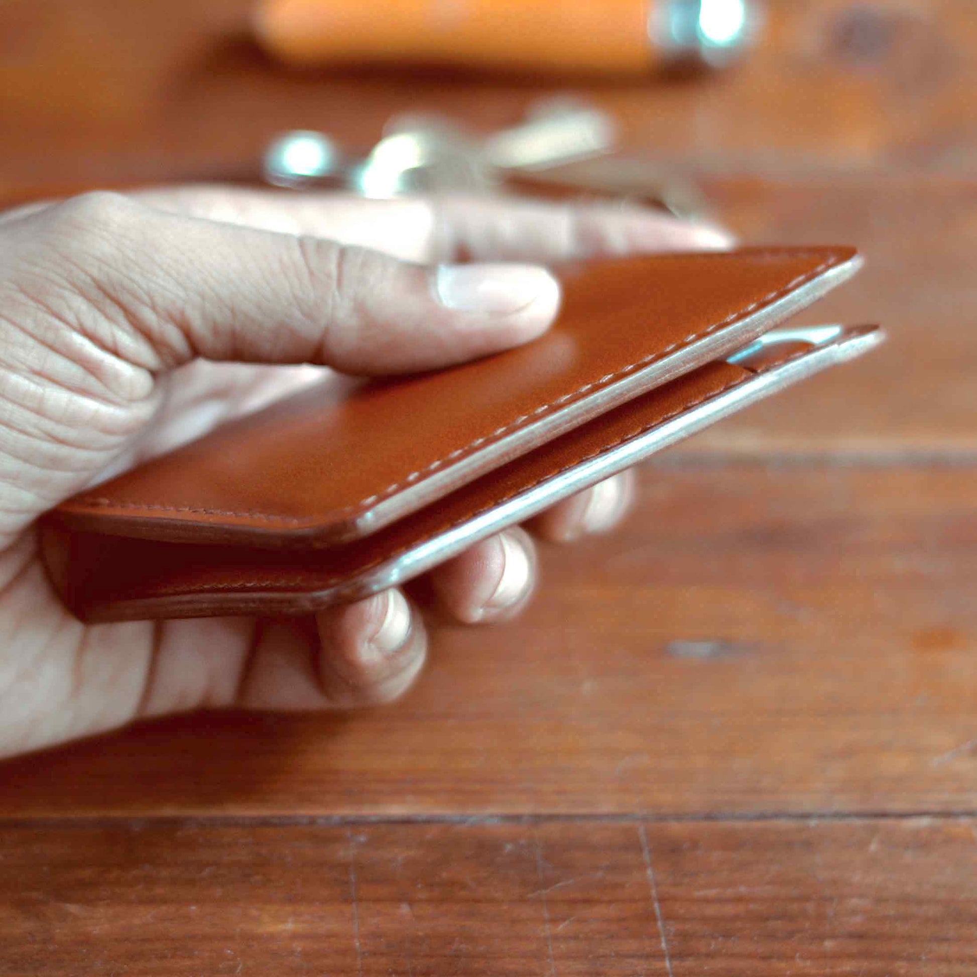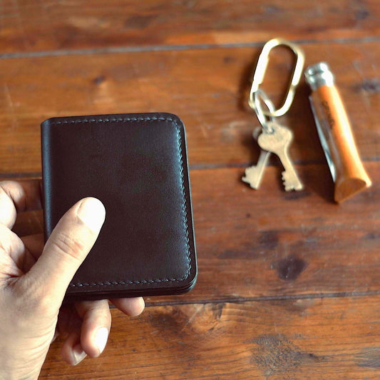 Compact enough to fit in your shirt pocket, this sleek leather wallet is designed to carry up to 6 cards OR 4-6 cards and cash.