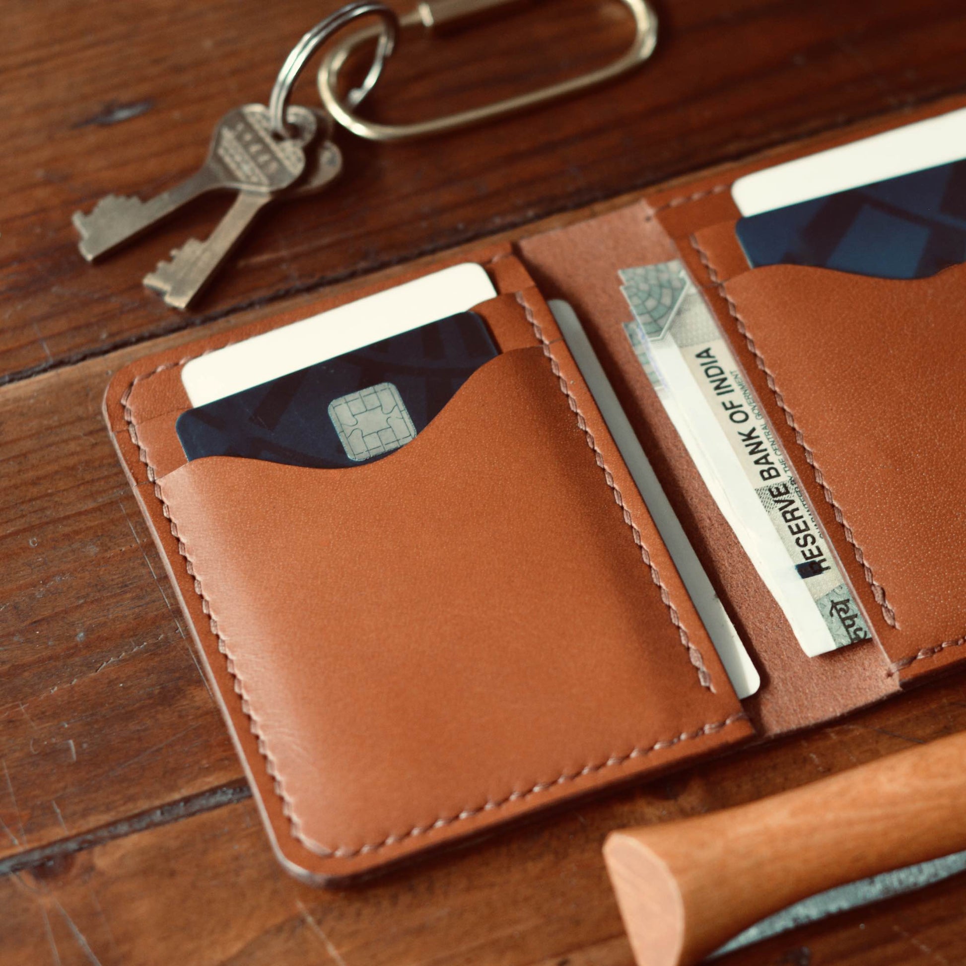 Unlike regular card holders, this card wallet has a bifold design, which looks very elegant while letting you carry your cards discreetly.