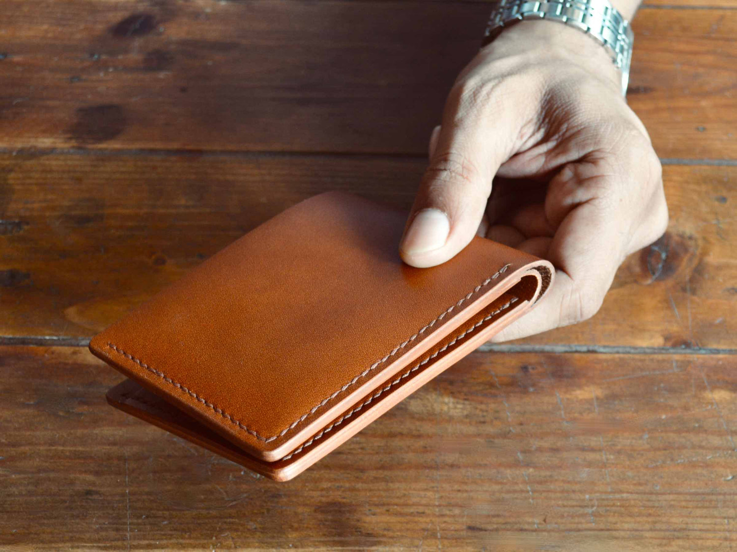 Made with the best grade of leather. The entire wallet, inside out, is made with the same 1.2 mm thick leather. We do not compromise the integrity of this wallet with any other materials such as fillers or fabrics. The wallet derives its strength and structure from the durable vegetable tanned full grain leather.