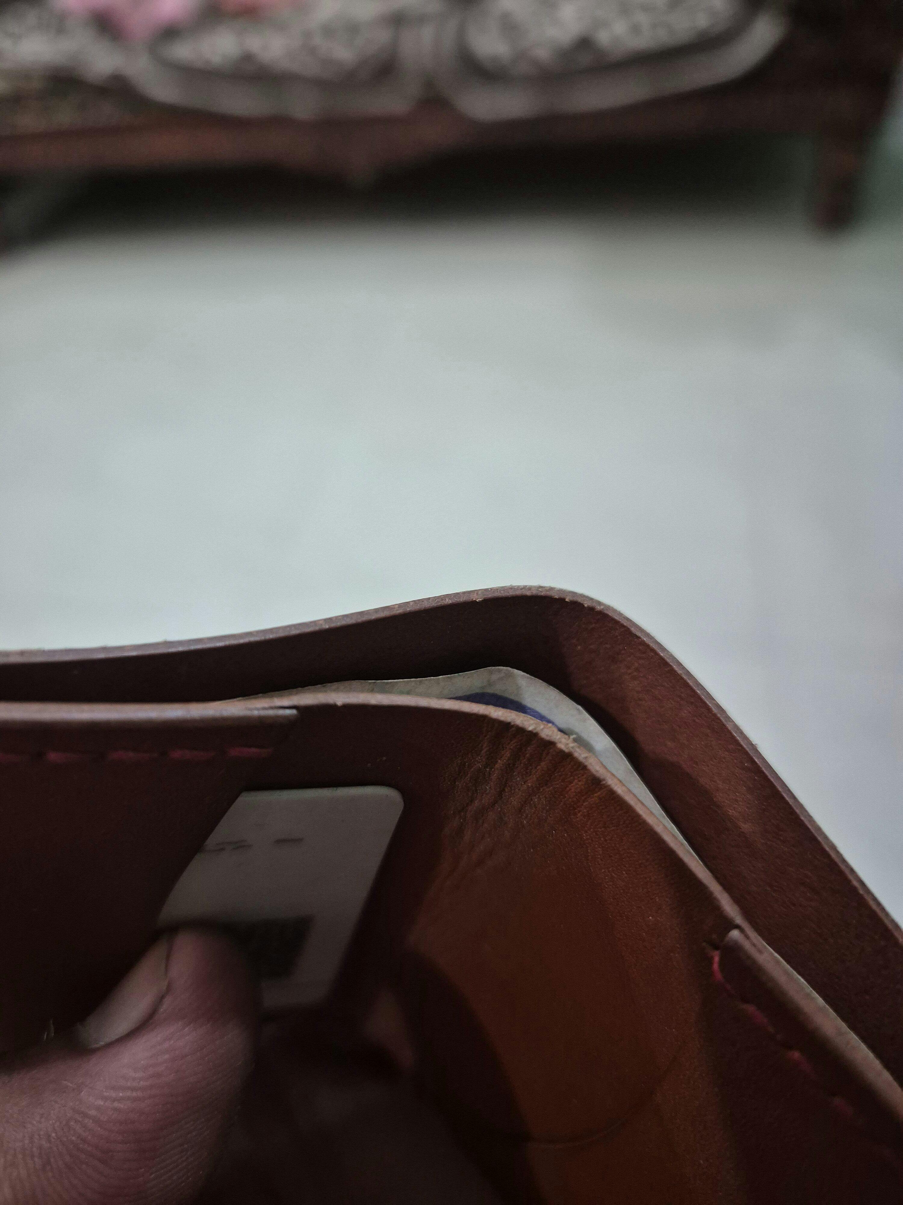We hand stitch our wallets with a single thread and two needles - This technique is called saddle stitching. Hermés is one of the very few luxury brands that stitches their bags using the saddle stitching technique.