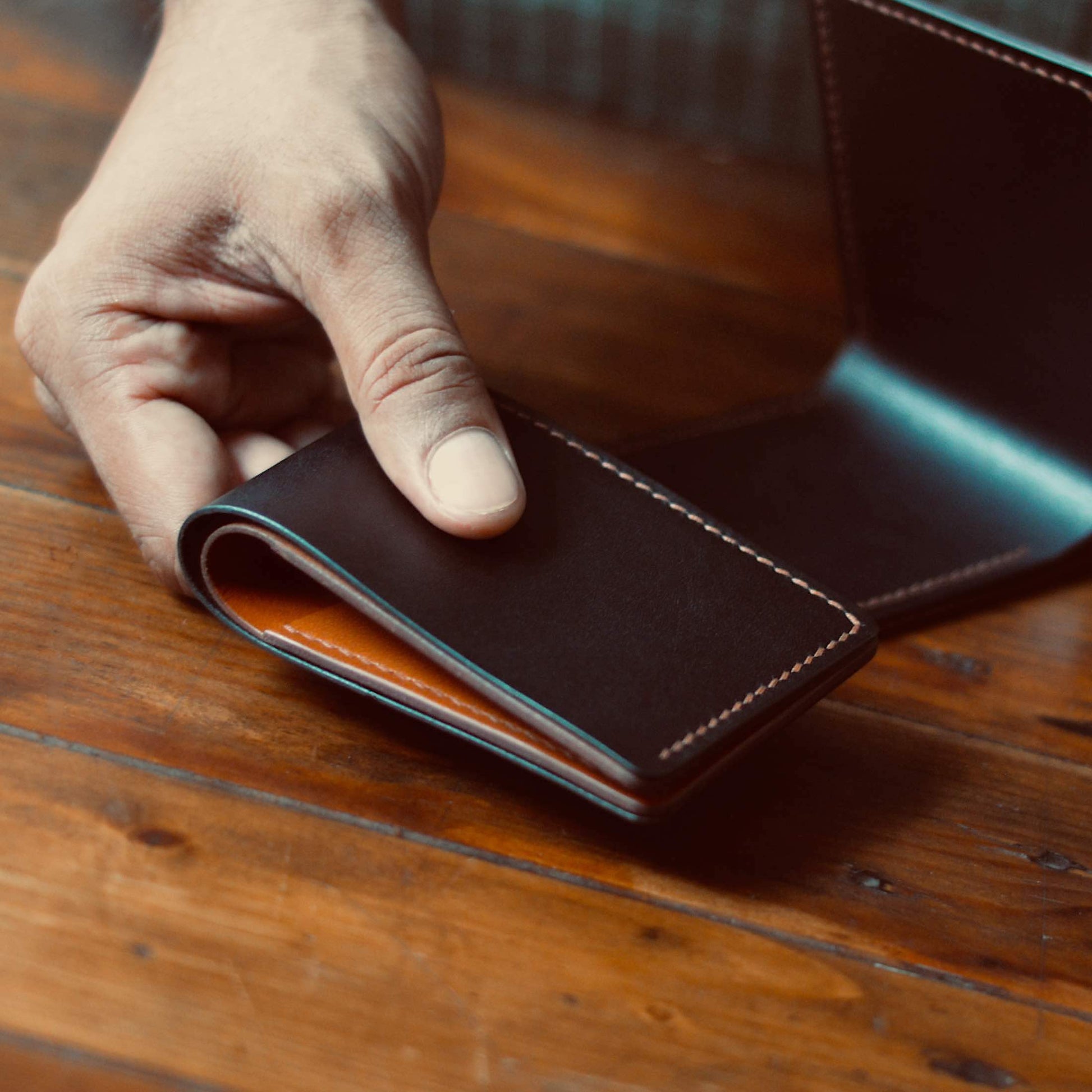 We hand stitch our wallets with a technique called saddle stitching. Hermés is one of the very few luxury brands that stitches their bags using the saddle stitching technique. Basically, using two needles and a single braided thread, a tiny knot is made between each stitch, making it virtually impossible for the stitches to come off or unravel. While sewing machines can stitch much faster, they cannot compete with the saddle stitch when it comes to durability of seams.